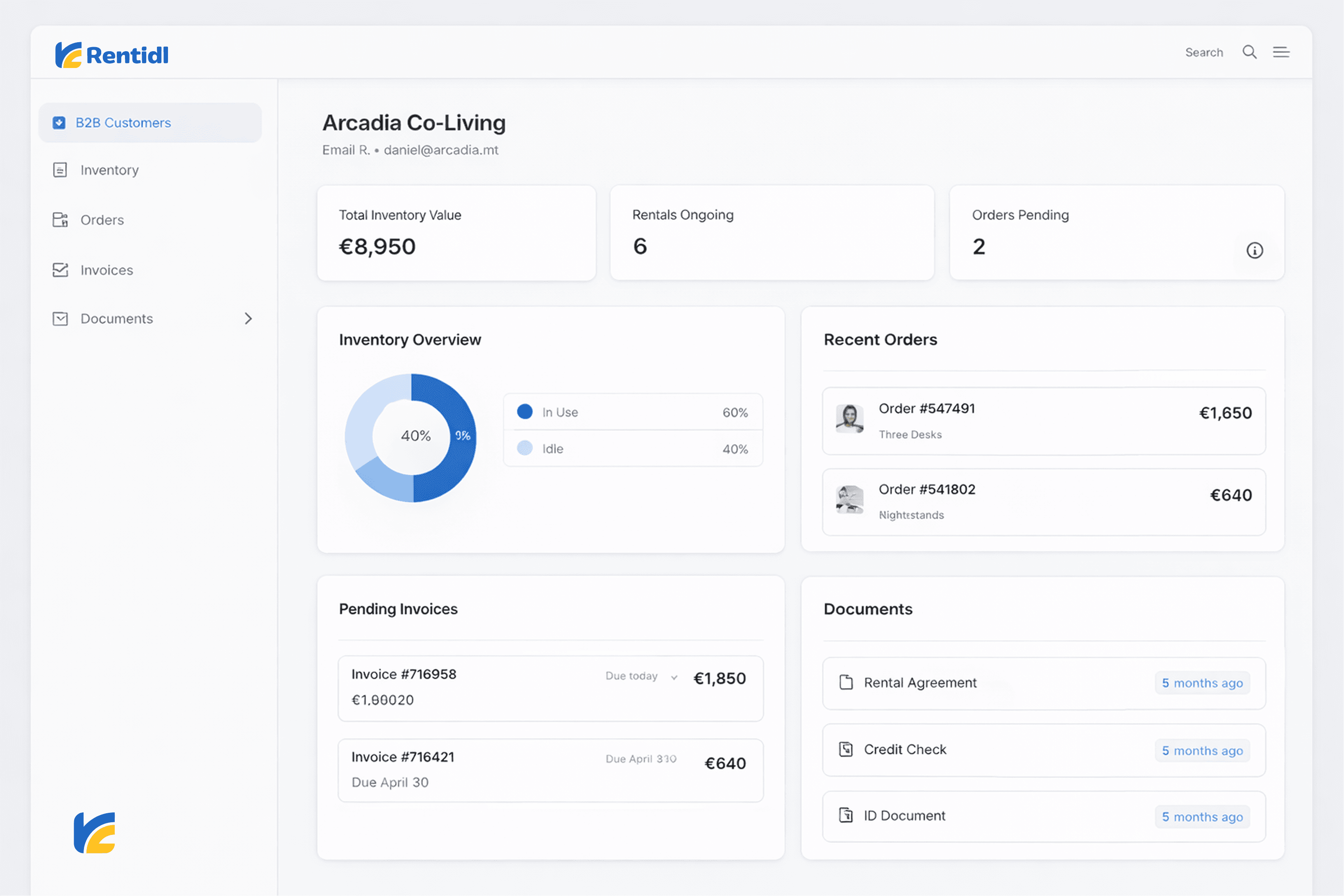 You can add, swap, return, or relocate items within Malta. Rentidl manages logistics and updates billing automatically.